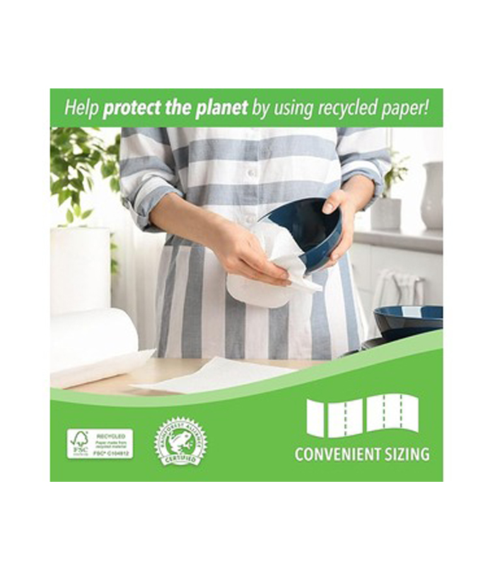 • Eco friendly paper towels made from 100% Grade A recylced paper with up to 80% post-consumer content, providing the perfect balance of strength and absorbency