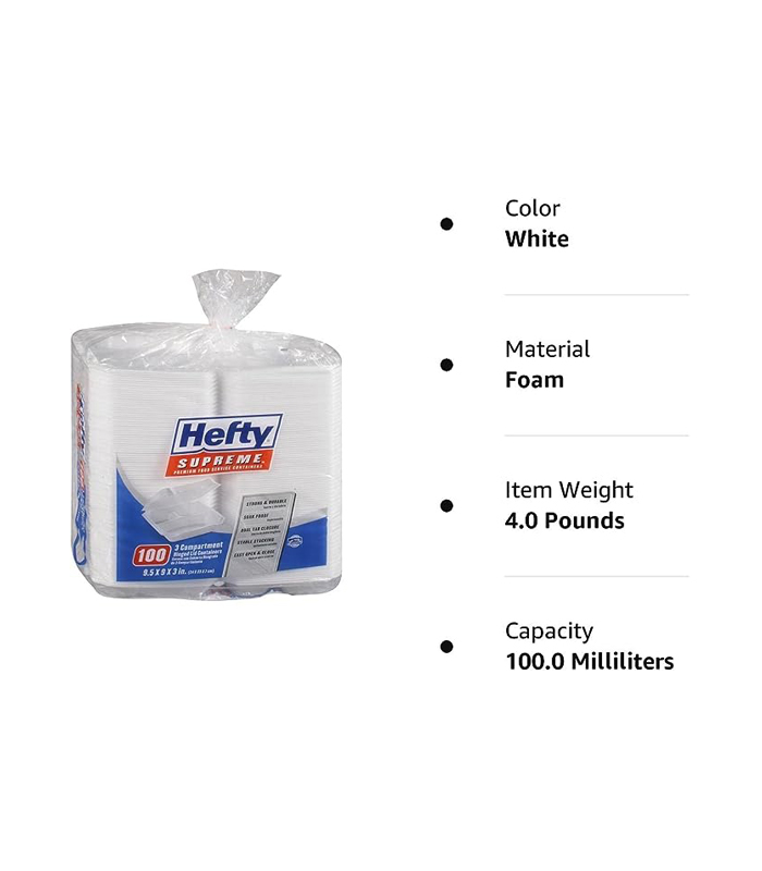Hefty Hefty Foam Compartment 9″ Hinged Lid Tray (100Count)