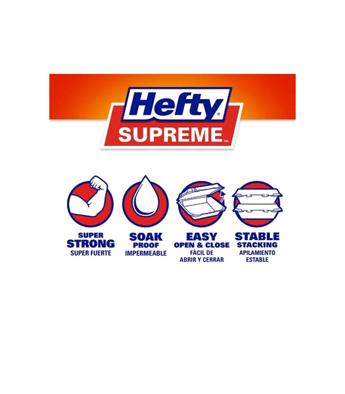 Hefty Supreme One-Compartment Hinged Lid Container make taking away leftover meals a cinch. These containers are ideal for restaurants or any catered affair and easily prevent food waste.